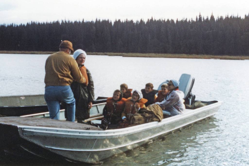 In the subsequent high winds, the five children were placed on the floorboards, huddled together and covered with a tarp, while Phil pounded his craft through the chop and the whitecaps in an attempt to find a decent place to land and seek shelter. We beached at Nikolai Creek just as the storm began to ease and then ceased.