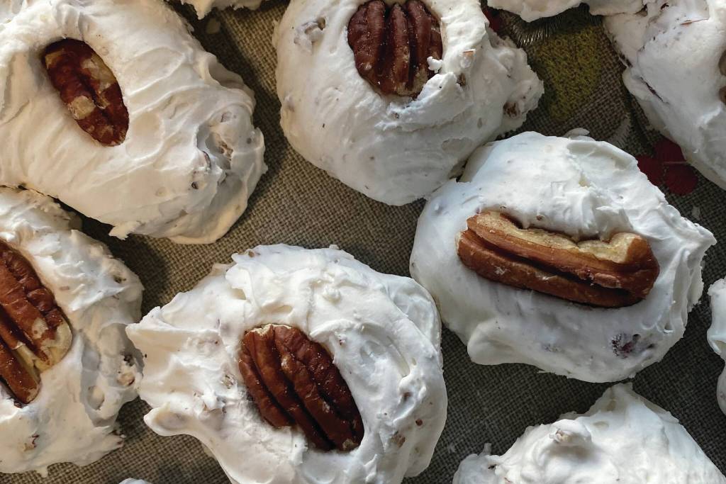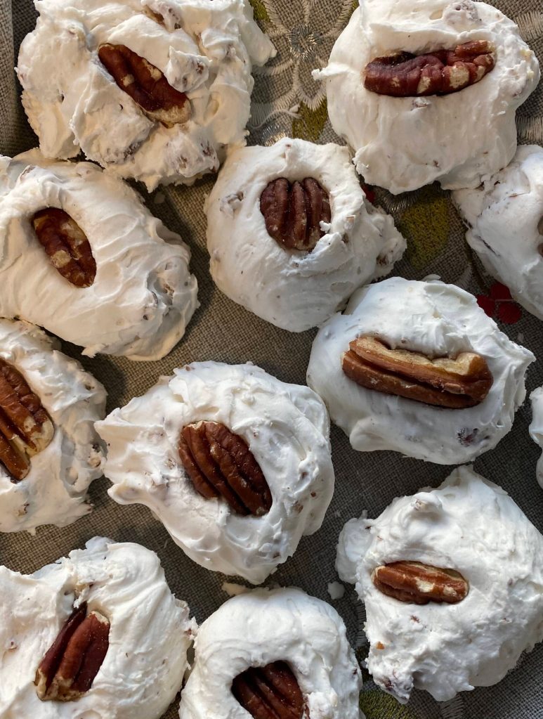 Press a whole pecan onto the top of each piece then let sit uncovered for 2 hours to dry and harden.