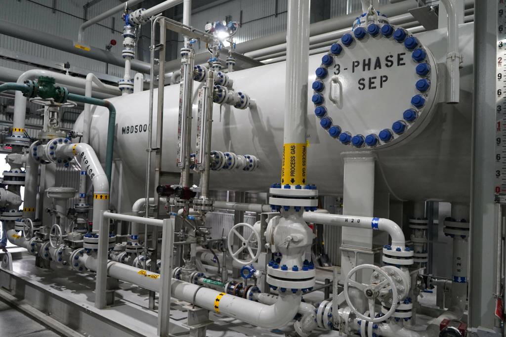 Natural gas processing equipment is seen at Furie Operating Alaska’s central processing facility in Nikiski, Alaska, on Wednesday, July 10, 2024. (Jake Dye/Peninsula Clarion)