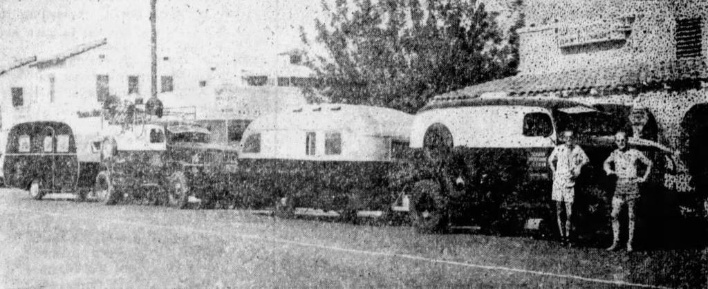 Both men were leaning against the front-left fender of a two-and-a-half-ton army panel truck, parked along a street in Palm Springs and hooked to a small house trailer. Parked behind the vehicle and trailer were a second heavy-duty panel truck and another small house trailer. On the door of both trucks was a business sign, “ALASKA PHOTOGRAPHIC EXPEDITION,” identifying Harry Reed as the photographer.