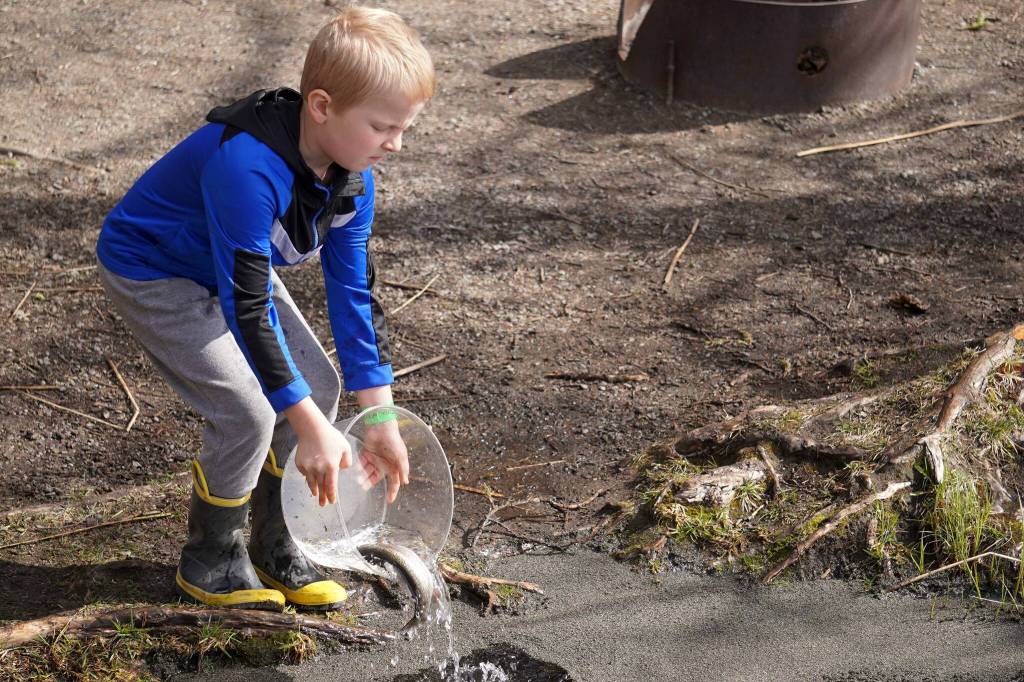 The annual event caps off the Salmon in the Classroom program run by the State Department of Fish and Game’s Aquatic Education Program. Kenai Peninsula Area Management Biologist Phillip Stacey said the event gathers dozens of agencies, including Alaska State Parks, Central Emergency Services, the U.S. Coast Guard Auxiliary and more.