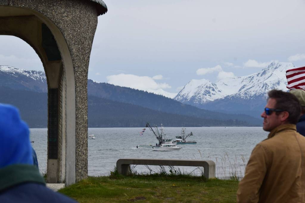 Boats of all sizes and occupations on Tuesday gathered offshore the Spit, in the choppy, early evening sea breeze, at the annual Blessing of the Fleet. Two rows of chairs, a quiet nod to the mariners no longer with us, sat empty in front of the Seafarers Memorial as community members quietly gathered in somber reflection of lives lost to the sea over the past year.