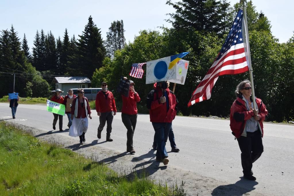 An older woman paused for a breath while trekking up the steep hillside to the Karen Hornaday parking lot after the march. In her hands, she cradled a sign that read “I <3 SPH.” She said that she doesn’t know what she’ll do if Medicaid is taken away and South Peninsula Hospital, which serves communities as far as Kenai and across the bay in Nanwalek, Seldovia, and Port Graham, is forced to close.