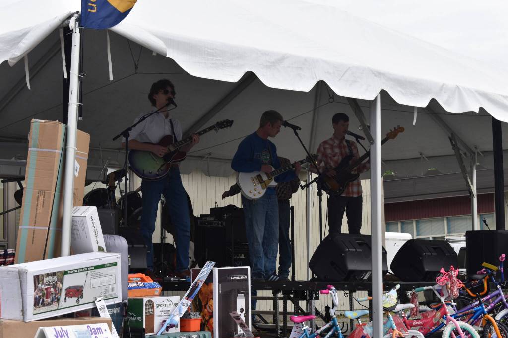 A band performs during the Family Fun in the Midnight Sun festival at the North Peninsula Recreation Center in Nikiski, Alaska, on June 21, 2025. (Photo by Jonas Oyoumick/Peninsula Clarion)