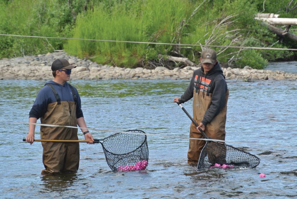 On Saturday, VFW Post Cmdr. Chuck Collins took his usual place on the Anchor River Bridge and let loose tubs of bright yellow, pink and blue plastic ducks. Event volunteers monitored the ducks’ short race downstream and scooped them up at the finish line with nets, checking the numbers at the bottom for the first-, second- and third-place winners in each color category.