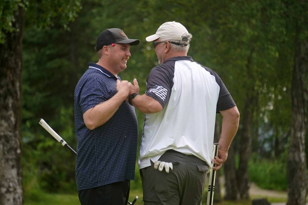 In a skins game, each hole is assigned a dollar value and the lowest stroke count per hole wins that total. Any ties “push” that money to the next hole. It was the team of Cowan and Shane Lundberg who took the largest prize, $500, by winning on hole 9 — but then Cowan threw out $1,000 for one more hole. After a series of ties and under suddenly pouring rain, Lundberg delivered the putt on hole 12 for him and Cowan again to take the largest pot of winnings.