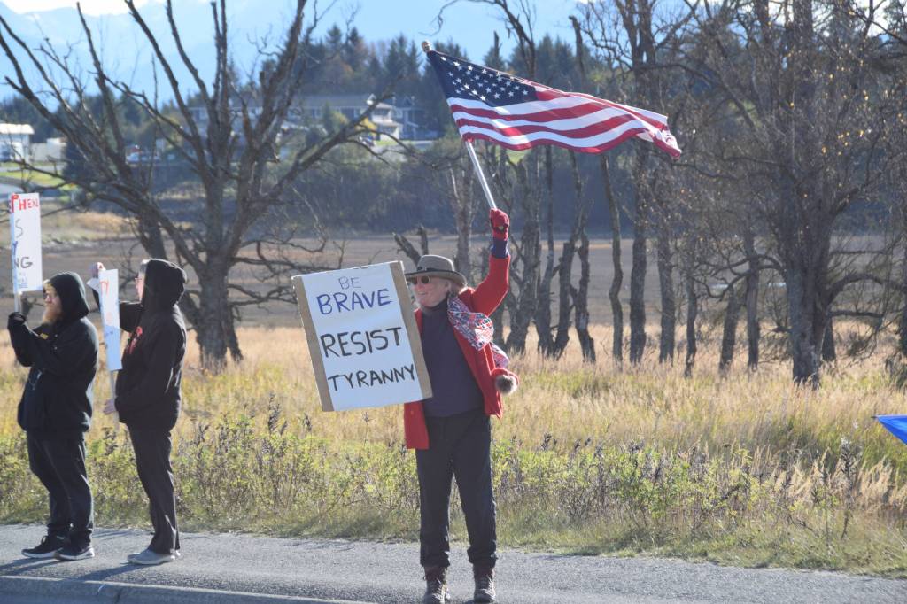 Homer’s protest, organized by Homer Women of Action, coincided with demonstrations that took place in more than 20 other communities across Alaska, according to MarchAgainst.org, including Kenai, Soldotna, Seward, Anchorage, Wasilla, Valdez, Talkeetna, Sitka, Juneau, Ketchikan, Port Alexander, Petersburg, North Pole, Fairbanks, Nome, McCarthy, Kotzebue, Kodiak, Healy, Haines, Gustavus, Girdwood, Dillingham and Bethel.