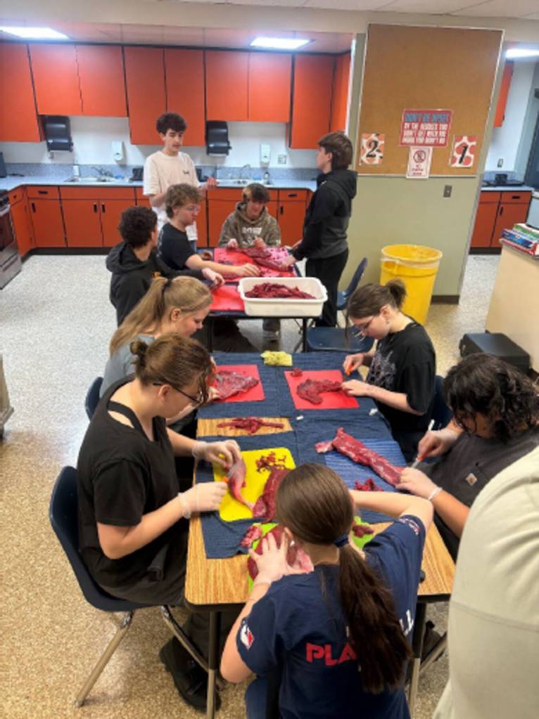 Soldotna High School students weren’t moose-ing around during the school’s recent annual interdisciplinary moose permit project. The program allowed students in anatomy and physiology, environmental science and culinary arts classes to participate in every stage of a moose harvest, all the way from wildlife stewardship to culinary uses.