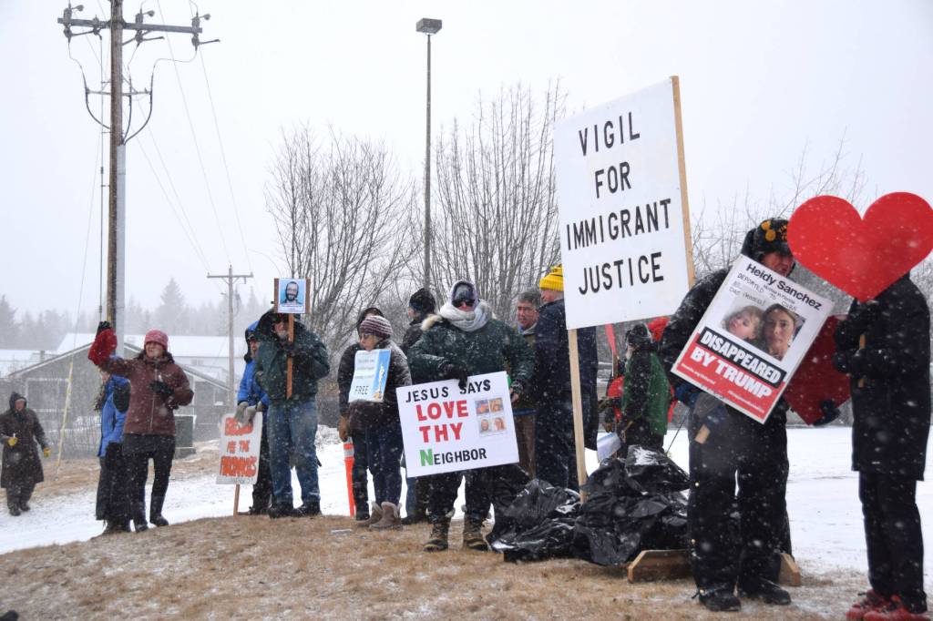 “The theme of our (local) vigil is faithful resistance, seeking justice for immigrants and the humane treatment of immigrants, their rights to due process,” Kuszmaul said Tuesday. “We have had an incident on the Kenai (Peninsula) and we wanted to focus on support for that family. We want to acknowledge what’s going on locally, what’s going on statewide, and support the national event.”