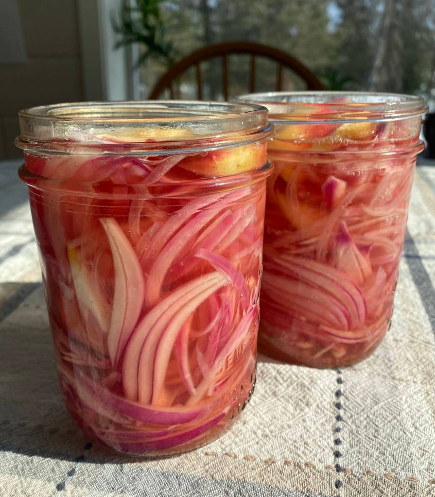 These pickled red onions have more sugar than burn and would be a delicious addition to a toasted turkey sub with provolone on sourdough.