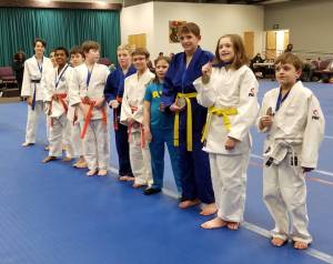 Sterling Judo Club students receive awards at a tournament in January.