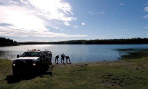 In this photo taken Sept. 23, 2013, a driver passes the small boat harbor in King Cove, Alaska.  A federal judge in Alaska on Tuesday, Sept. 8, 2015, dismissed a lawsuit brought over the U.S. Interior Department's refusal to allow for a road from King Cove to an all-weather airport at Cold Bay. The road has drawn opposition from environmental groups because it would run through Izembek National Wildlife Refuge.  (James Brooks(/Kodiak Daily Mirror via AP) MANDATORY CREDIT