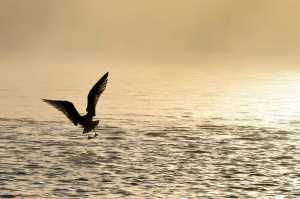 Photo by Rashah McChesney/Peninsula Clarion  A seagull lands on the Kenai River near the Pillars Boat Launch on Monday August 24, 2015 near Kenai, Alaska.