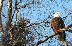 Photo by Kelly Sullivan/ Peninsula Clarion A bald eagle basks in the afternoon sunshine above the busy Sterling Highway near Kasilof, Monday.