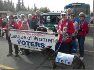 The League of Women Voters of the Central Kenai Peninsula lined up for the Soldotna Progress Days parade on July 26. Photo courtesy League of Women Voters.