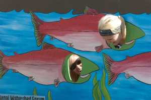 Photo by Rashah McChesney/Peninsula Clarion   (left) Megan Kramer and Lauren Bauder laugh while posing as king salmon during the Kenai Watershed Forum's 23rd Annual Kenai River Festival Saturday June 8, 2013 in Soldotna, Alaska.
