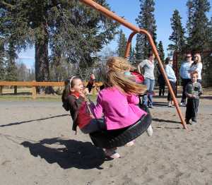 Addison, 3, and her baby brother Brayden Peterkin, 1, sat motionless on a swing set unable to push…