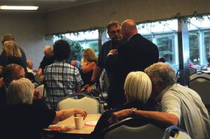 A couple chats at a table at the 50th Kenai Central High School Class of 1967 reunion at the Kenai Senior Center on Friday, July 28, 2017 in Kenai, Alaska. The reunion was organized to mark the ‘67 graduating class’s reunion, though classes from the ’60s, ’50s and the days of the Territorial School before that were also welcome. (Photo by Elizabeth Earl/Peninsula Clarion)