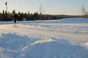 A skater makes her way around the ice skating trail at Soldotna Creek Park on Friday, Dec. 29,…