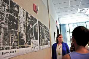 Photo by Elizabeth Earl/Peninsula Clarion Stephanie Queen (left), the director of economic development and planning for the City of Soldotna, listens to citizens' concerns about the city's possible annexation of areas currently outside the city boundaries at a public meeting at the Don Gilman River Center in Soldotna, Alaska on Thursday, June 30, 2016.