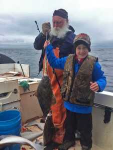 Photo courtesy Susie Morris Baker Ben Baker, 10, of Augusta, Georgia, proudly displays two halibut that he caught with Aron Hanson (left) on a charter boat out of Homer. The possession limit for 2016 in Area 3A, which includes the central Gulf of Alaska, is two fish per person per day, with a limit of four total in possession, according to the International Pacific Halibut Commission. The average size fish caught out of the Homer port is 10.85 pounds this season, ranging between 2.6 pounds and 86.6 pounds, according to the Lower Cook Inlet sportfishing report for the week of July 6.