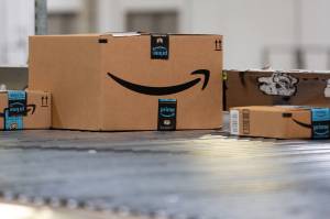Packages move along a conveyor belt at the Amazon.com fulfillment center in Robbinsville, New Jersey, on June 7. (Bloomberg/Photo by Bess Adler)