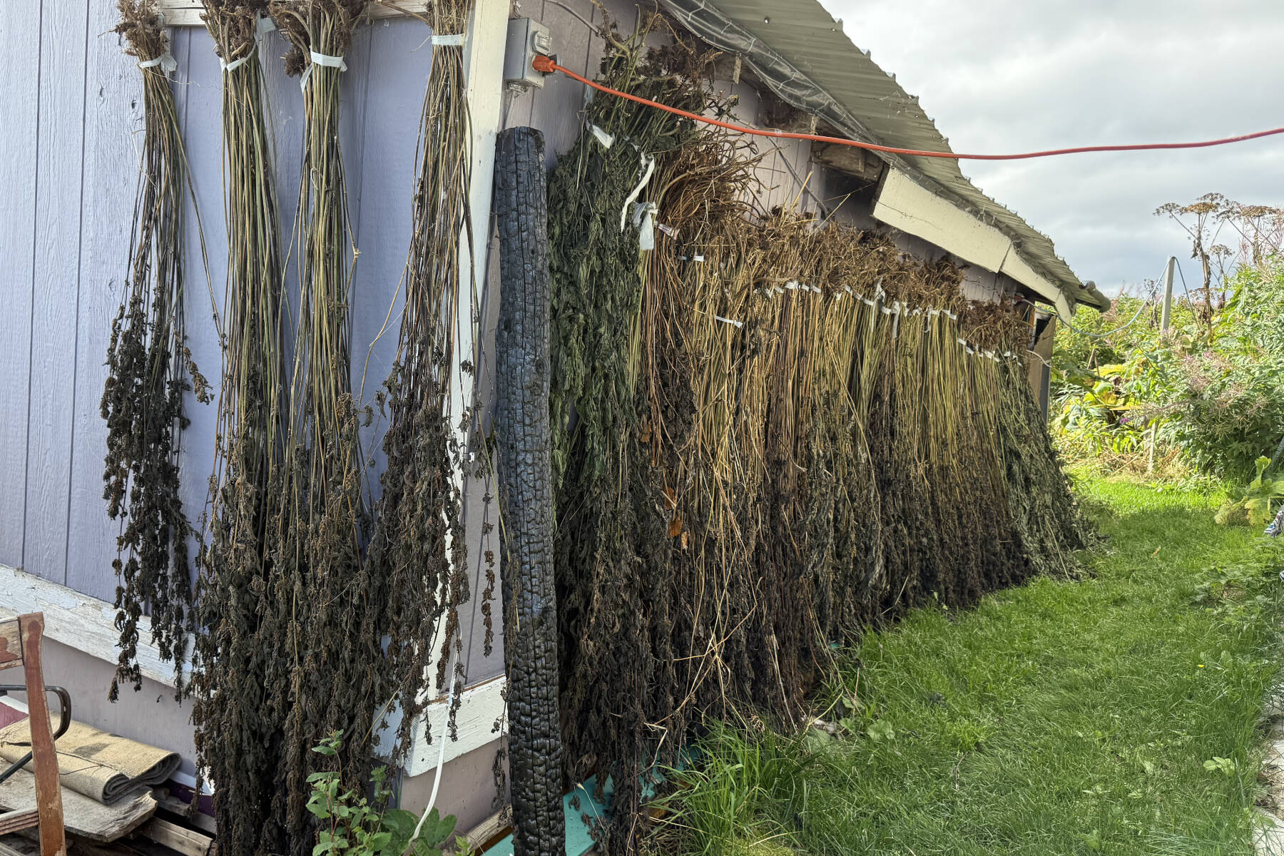 Community members can join in the construction of the woven sculpture from Sept. 1-6 from 11 a.m. to 7 p.m. daily at Mariner Park on Homer Spit Road. On Sunday, Sept. 7, the basket is slowly decorated by community members, often with remembrances for departed loved ones and other personal sentiments tucked inside and “unseen by others but respectfully held within the heart of the basket until the time of release.” Muller said that all are invited to tie a red string on the basket in memory of “stolen, missing and murdered sisters.” Additionally, a list of community members who have passed away in the past year will be present as an act of remembrance, with a pen to add names.