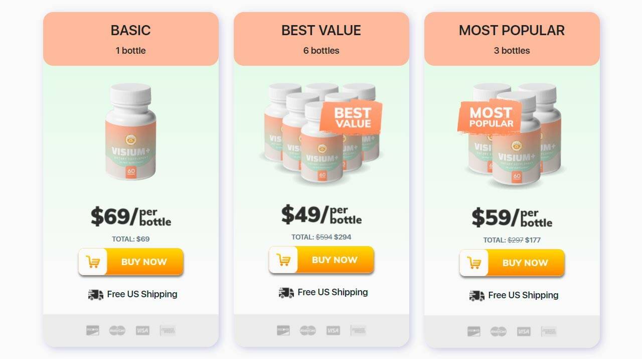 As helpful as this product is, the creators behind Visium+ have chosen to only offer the remedy on their official website. In doing so, they also provide free shipping as an incentive to get involved. Right now, the packages include: