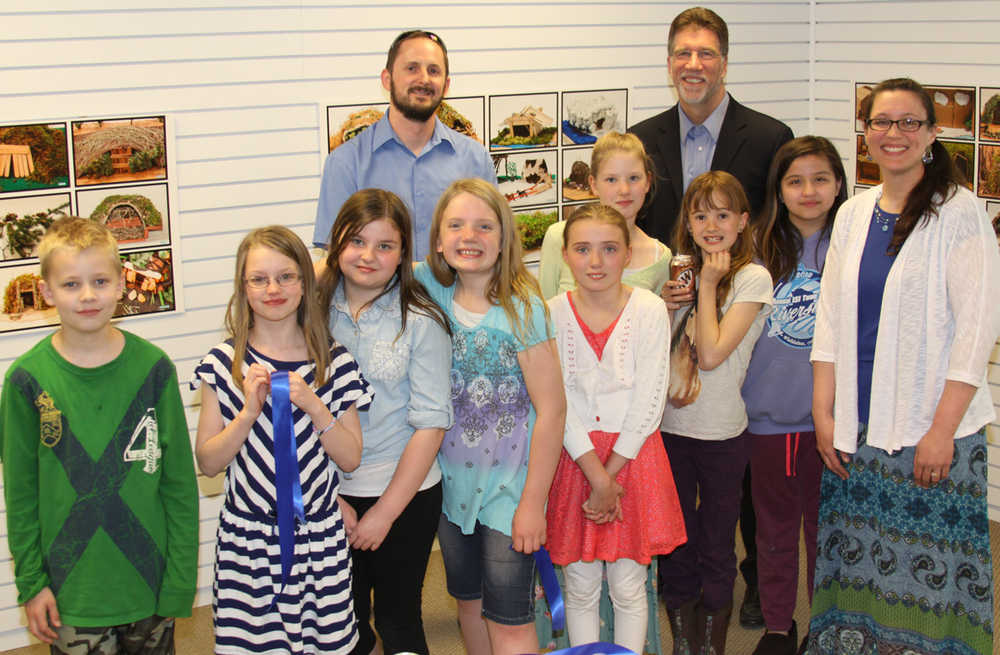 The Kenai Fine Arts Center May show features a wide variety of eye pleasing works from the Peeps Young Artist exhibit sponsored by the Kenai Peninsula Birding Festival, to horn carvings and wildlife photography to an Ancestral Homes of Alaska study done by a 4th grade Kalifornsky Beach Elementary school class. According to K-Beach 4th grade teacher Darcy Marcou the project started out as a short Alaskan research project on Ancestral Homes, “The children were invited to choose one of five traditional Alaskan culture groups and do a research project making a power point and as a homework piece they could build a model of that style dwelling. I’ve never seen kids as excited about a homework project as this one. We displayed them at a parent night at school and Joe Kashi came and was excited about helping make it part of the May show here at the Fine Arts Center,” she told the Dispatch. “Our children learn in a variety of ways and whenever they have a chance to apply their learning with a tactile type exercise like what these kids have done with the Ancestral Homes project it is impressive not only for the community but these children will remember what they’ve learned here for a long time as compared with other book learning which they may learn quickly but not retain for as long as an exercise such as this. It’s very impressive and we appreciate the community support being here tonight,” commented Dr. Steve Atwater KPBSD superintendent of schools who was on hand to cut a ribbon opening night of the May art show.