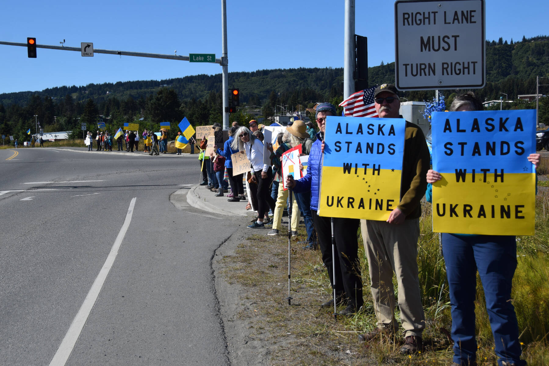 “It was a nothing burger,” Dan Perry said in Soldotna on Friday, standing at the side of the Sterling Highway alongside over 100 people carrying Ukrainian flags and signs expressing support for the country. Perry said that he was relieved that Trump hadn’t made any major concessions to Putin, but also said he didn’t think Alaska should have been the setting for the meeting.
