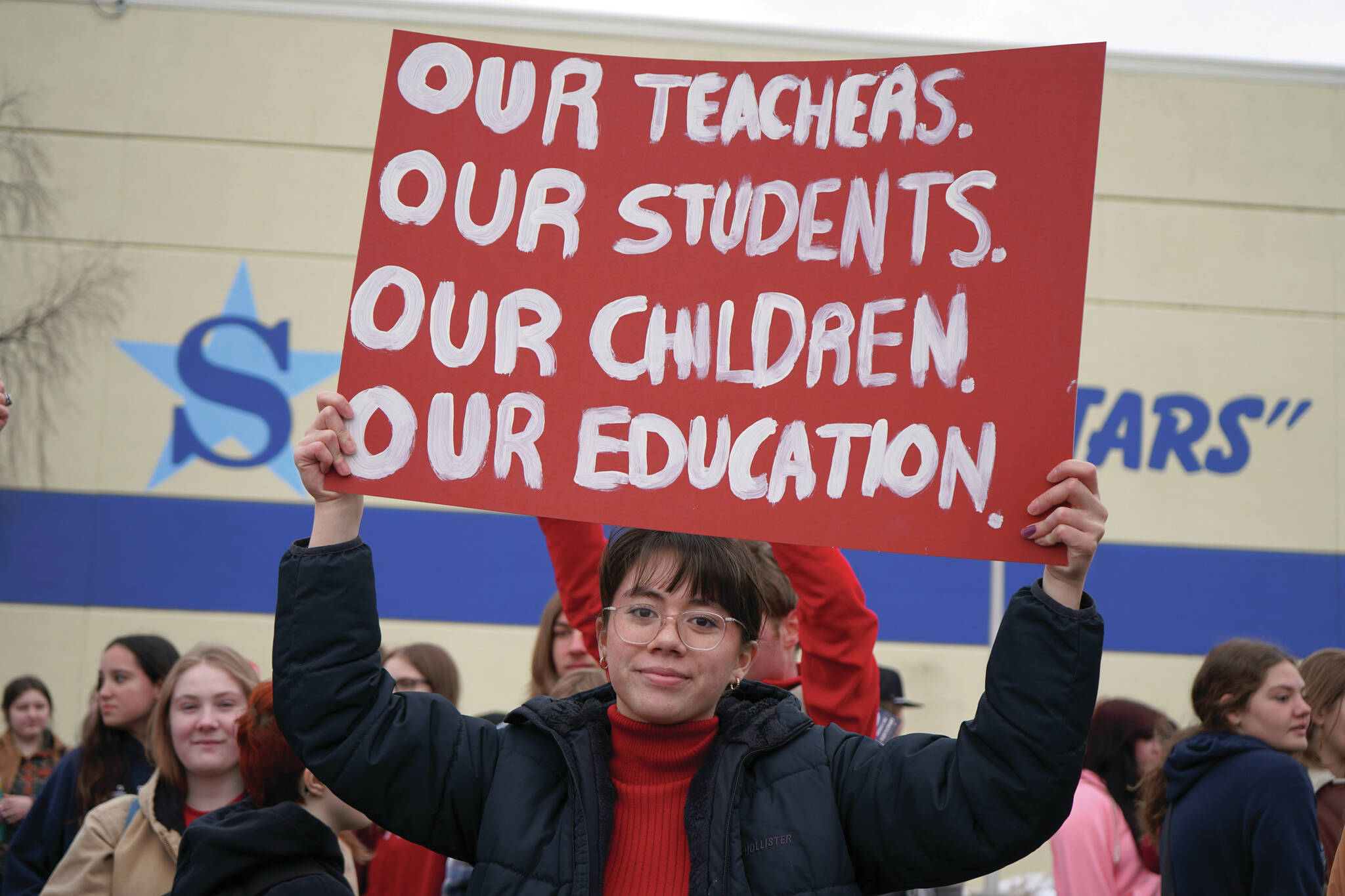 Those were a few of the chants that erupted from a crowd of well over 100 students who walked out of Soldotna High School on Wednesday to protest Gov. Mike Dunleavy’s veto of a Senate bill that included an increase to school funding and the failure of the State Legislature to override that veto — an effort that fell short by only one vote.