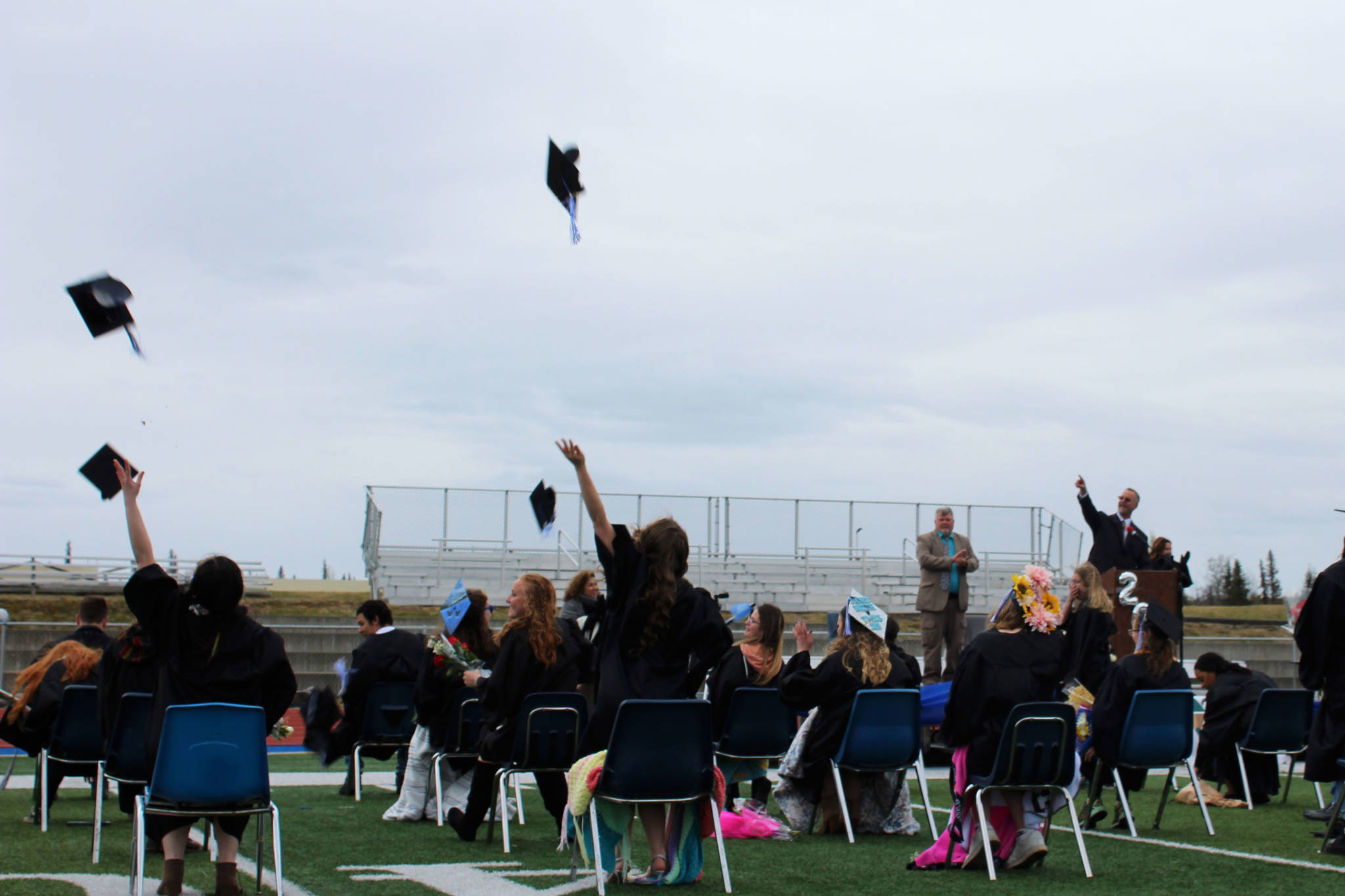 Blustery wind and occasional showers didn’t dampen the excitement amid attendees of Connections Alaska Homeschool Program’s 2021 graduation ceremony on Thursday, where 48 graduates were honored.