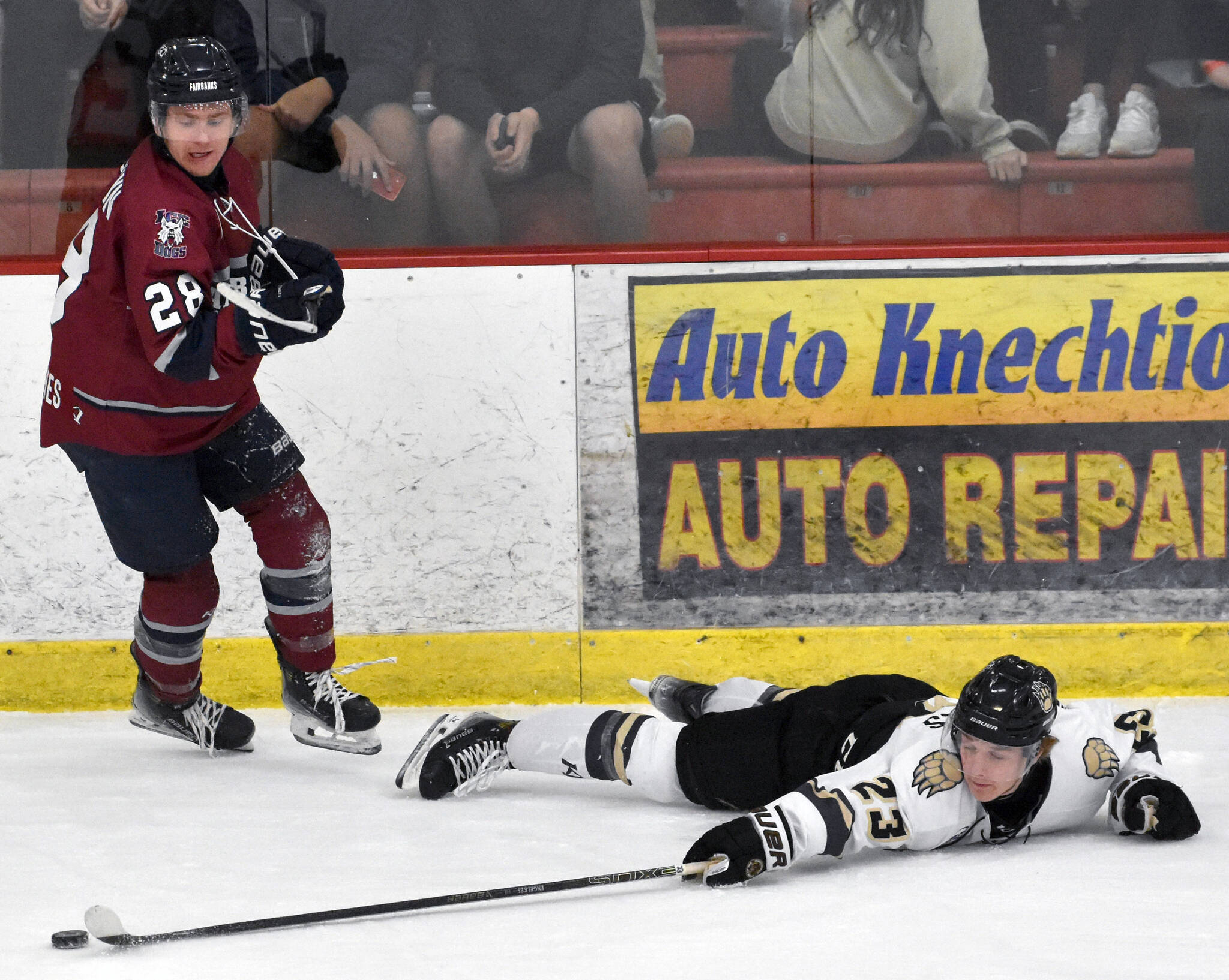 The Bears got off to a slow start in the game, falling behind 2-0 early just as they had Friday. Luca Ricciardi and Adam Timm had the goals for the Ice Dogs.