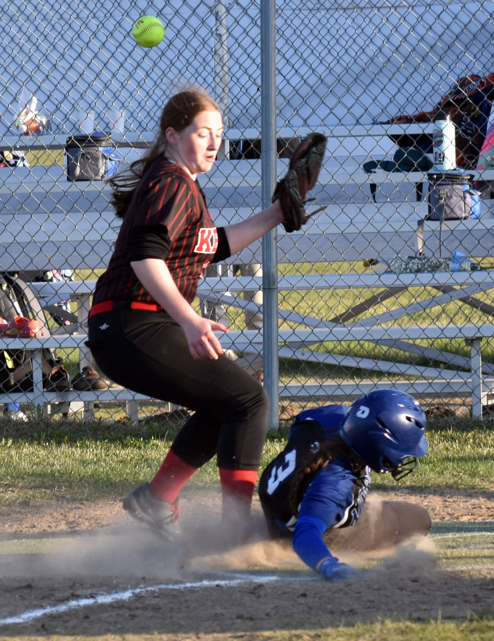 The Kenai Central softball team swept Palmer in a Friday Northern Lights Conference doubleheader at Steve Shearer Memorial Ball Park in Kenai.