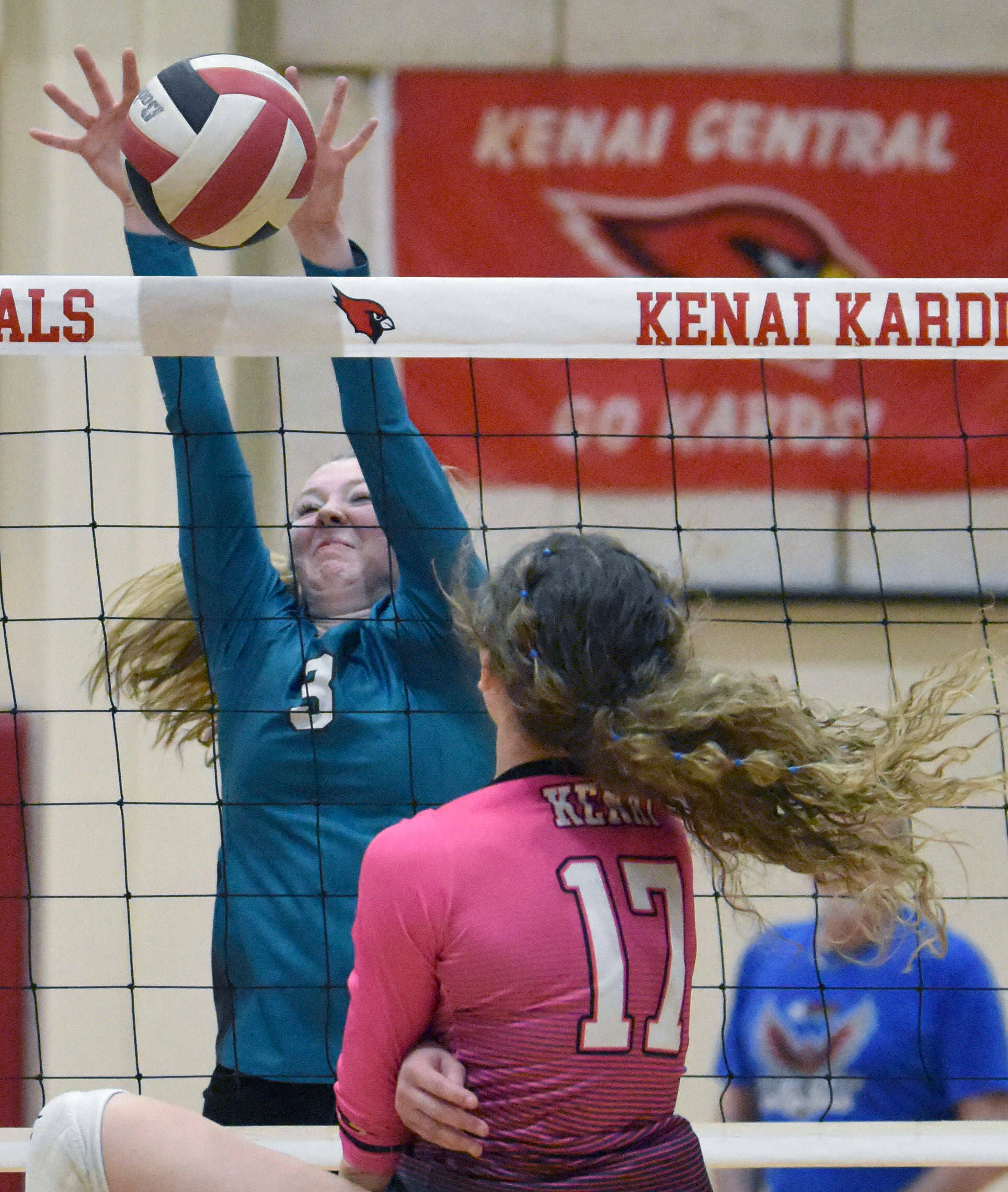 Before the match, Nikiski middle blocker Ashlynne Playle reaggravated an ankle injury and couldn’t play.
