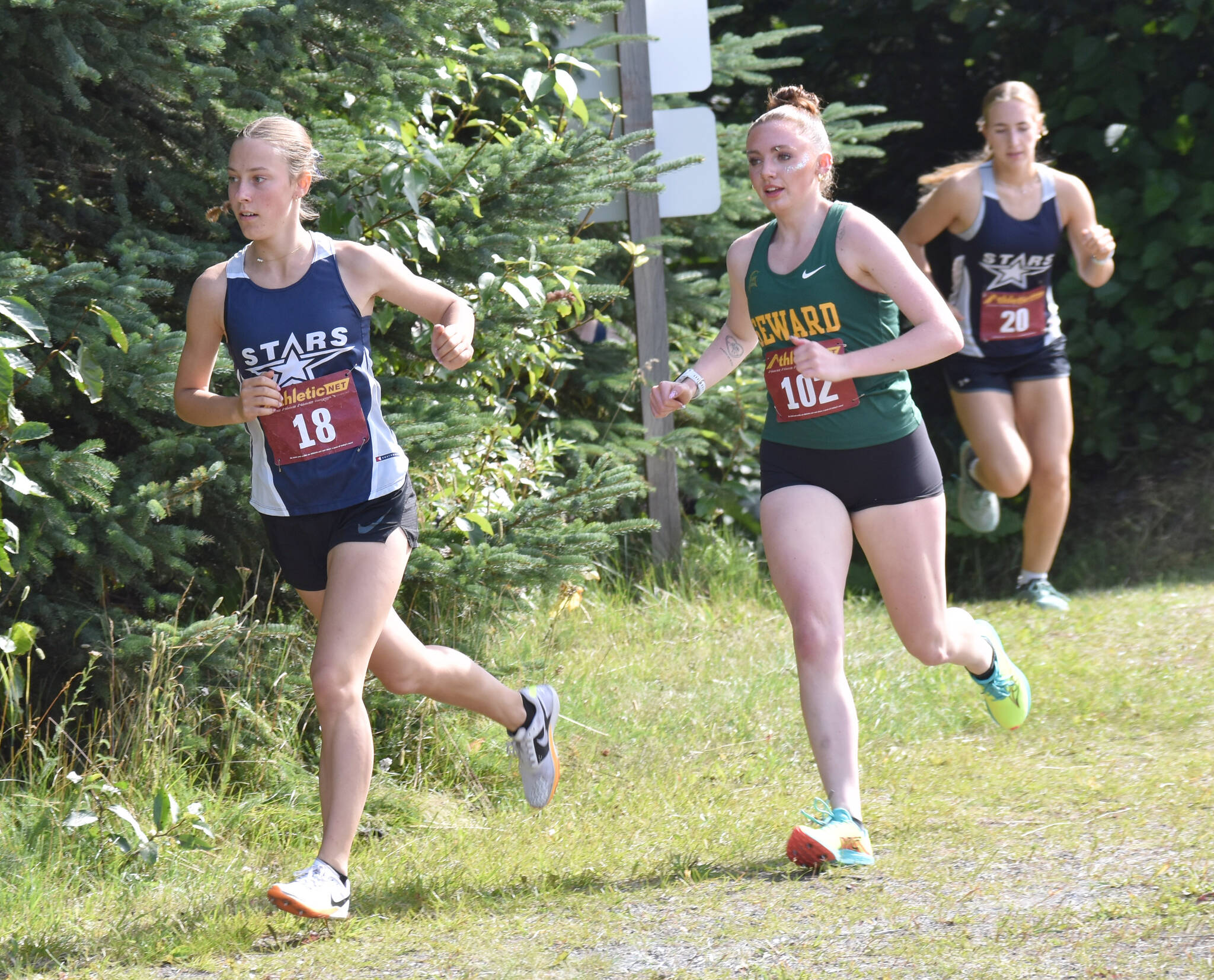 1. Olive Jordan, Sew, 22 minutes, 3 seconds; 2. Etta Bynagle, Hom, 22:29; 3. Ariela Garvey, Hom, 22:59; 4. Tirzah Brueckner, Sew, 23:49; 5. Morgan Harness, Hom, 24:08; 6. Abigail Ostrom, Hom, 26:17; 7. Sofia Tews, Ken, 26:18; 8. Eva Abel, Sol, 27:02; 9. Breckin Sulley, Sol, 27:25; 10. Kylie Smith, Sol, 27:38; 11. Emma Seavey, Sew, 27:42; 12. Madeline Ries, Sol, 28:40; 13. Nadia Whitaker, Unalaska, 29:28; 14. Amy Moyer, Unalaska, 29:29; 15. Shelby Huffer, Sol, 29:51; 16. Evelyn White, Sol, 35:03; 17. Reagan Steen, Hom, 35:32.