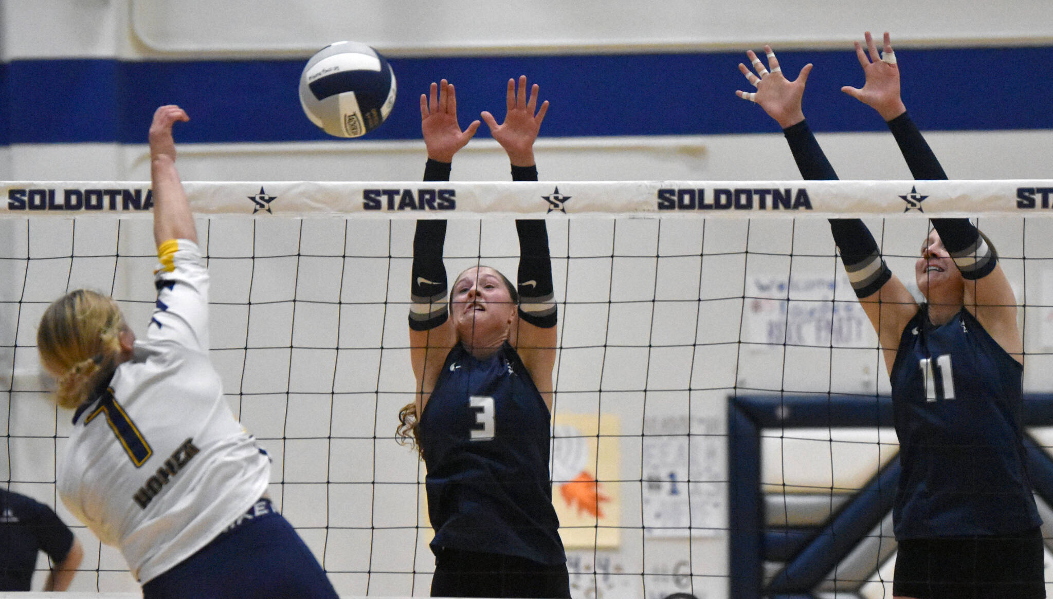 Soldotna head coach Luke Baumer was impressed with Homer’s overall scrappiness and the outside hitting of Swift Blackstock and Reilly Sue Baker. The coach said both of them swing very high and fast.