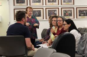 Kenai Peninsula Borough IT Director Ben Hanson speaks with attendees at a meeting of the Kenai Peninsula Borough Assembly on Tuesday, June 15, 2021, at the Betty J. Glick Assembly Chambers in Soldotna, Alaska. The attendees were concerned about voting measures approved by the assembly aimed at improving borough election security. (Ashlyn O’Hara/Peninsula Borough)