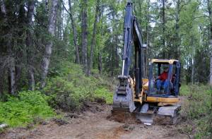 Through the fluorescent green of ferns and birch trees across from the Central Peninsula Landfill, Tsalteshi Trails Association…