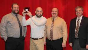 An exuberant James Harris accepts the Alaska Teacher of the Year title.