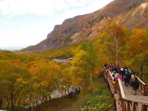 Boardwalks protect sensitive hot spring pools from foot traffic damage at Changbai Mountain's Julong Hot Springs (USFWS/Leah Eskelin)