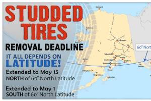 Studded tires will be allowed on all parts of the Sterling Highway until the May 15 deadline